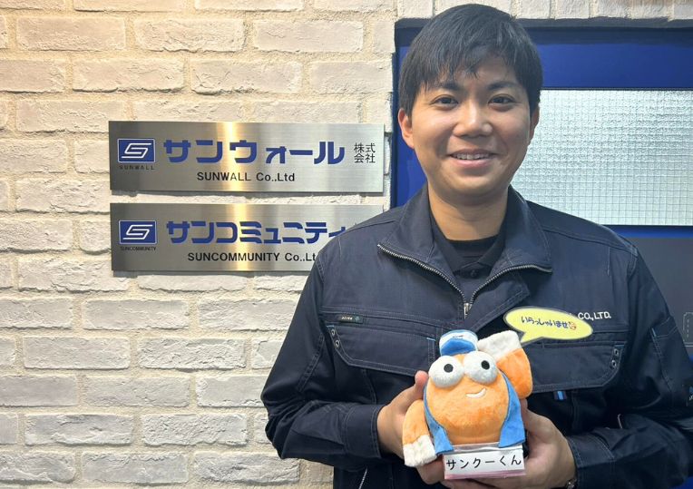 サンウォールは、仕事に前向きな姿勢があることが魅力の会社だと思います。みなさん資格取得に励んでおり、また、月に一度ある会議ではそれぞれの現場の進捗や改善点を共有して会社をより良くしようと頑張っています。先輩方もサポートしてくれるので、働きやすさを感じています。